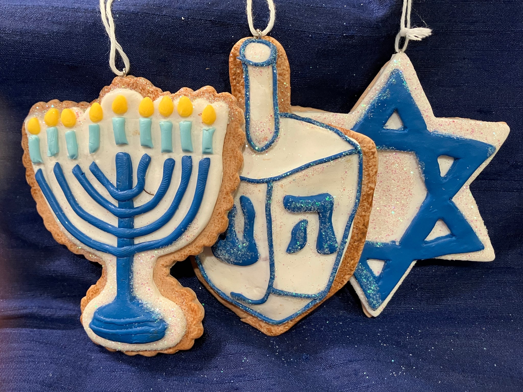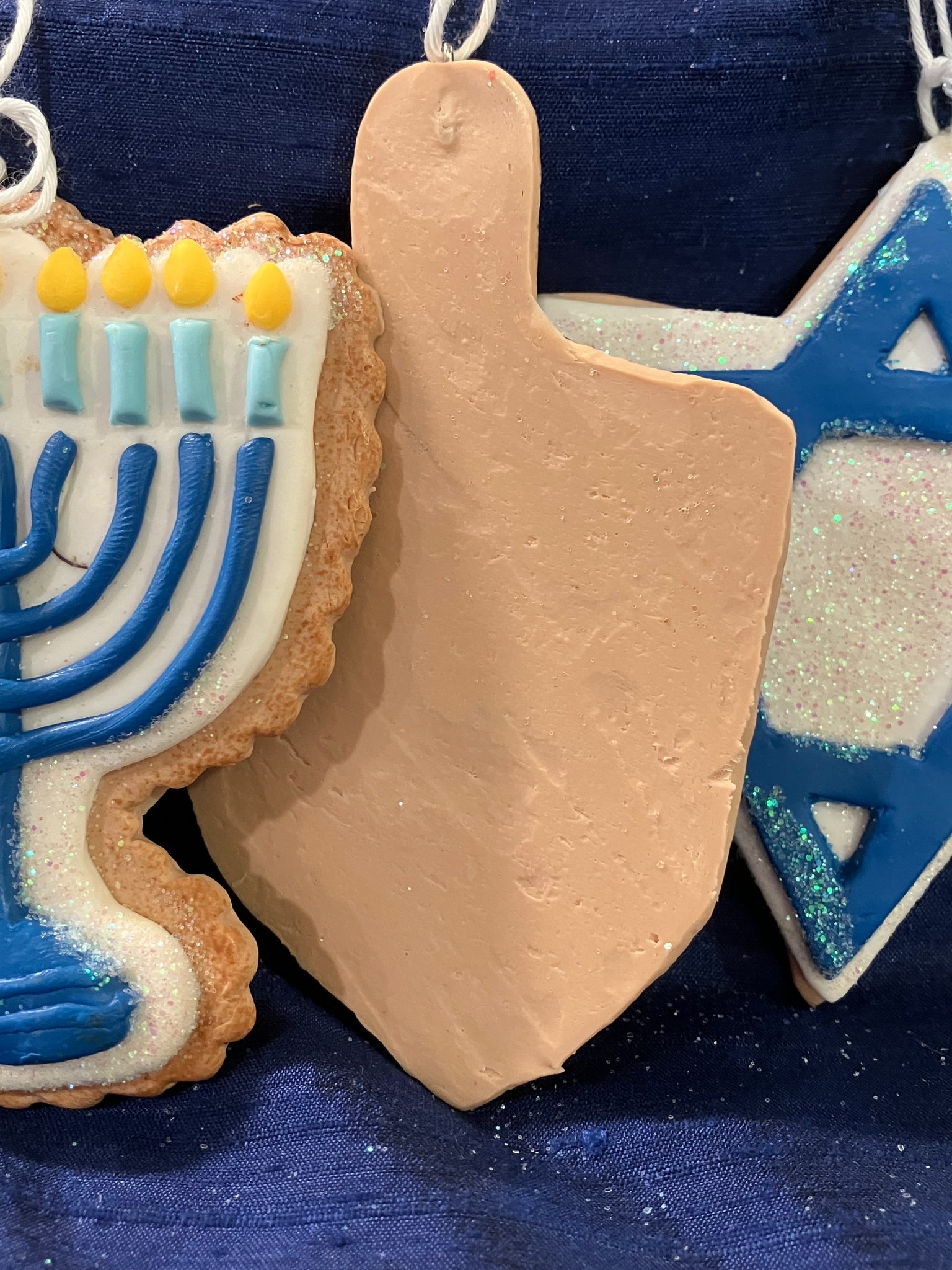 These 4.25" claydough Hanukah ornaments are perfect for a blended family tree, a Hanukah bush, or just to celebrate the eight nights. Choose the dreidel, menorah or the star.